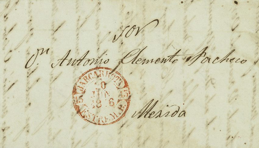English 1846. BARCARROTA to MERIDA. Baeza BARCARROTA / ESTREM. B, in red (PE2) 2004 edition. MAGNIFICENT AND RARE.