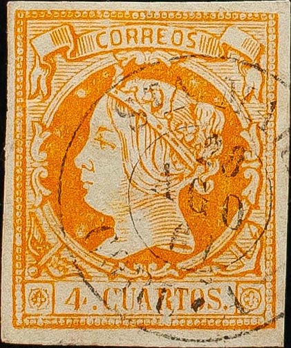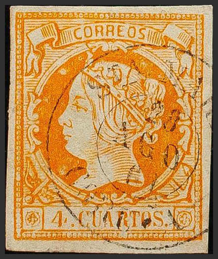 52. 1860. 4 cuartos yellow. Postmark STª MARTA / CORUÑA. MAGNIFICENT AND RARE.