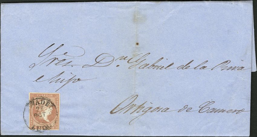 48. 1858. 4 red cuartos . RIVADEO to ORTIGOSA. Postmark RIVADEO / LUGO (Type I). NICE.