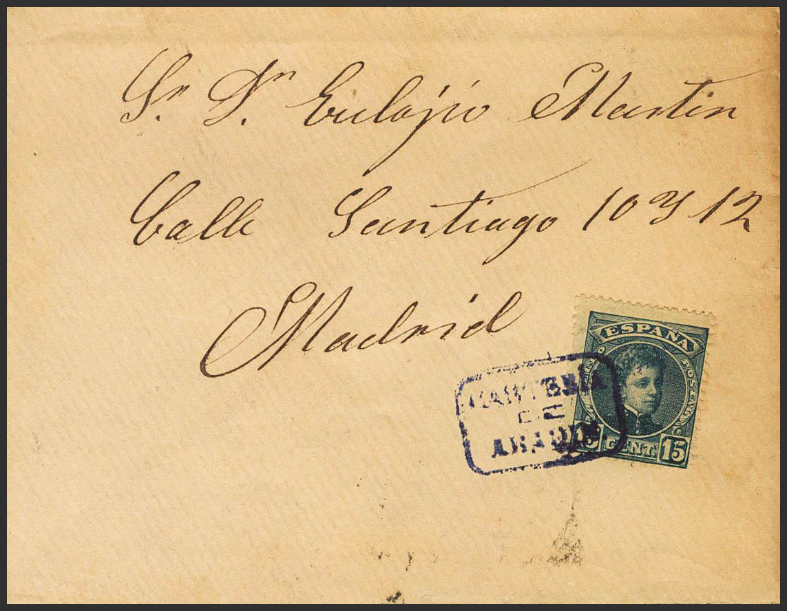 244. 1901. 15 cts blue black. ABADIN (LUGO) to MADRID. Special postmark CARTERIA / DE / ABADIN. MAGNIFICENT AND RARE, NOT REVIEWED.