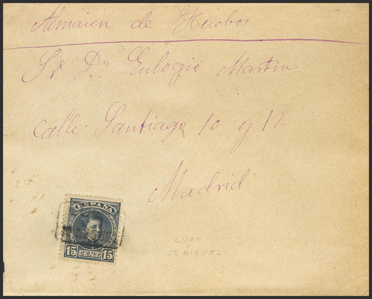 244. 1901. 15 cts blue black. SAN MIGUEL to MADRID. Mail postmark LUGO / SN.MIGUEL. MAGNIFICENT.