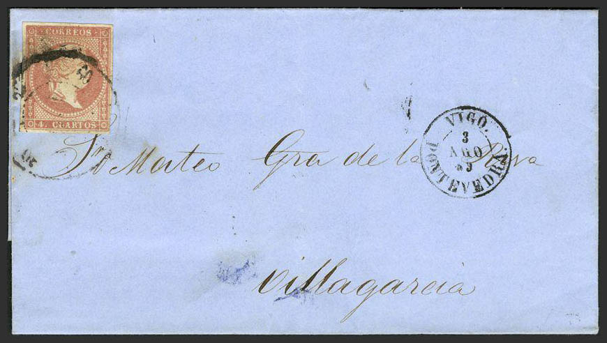48. 1856. 4 red cuartos . VIGO to VILLAGARCIA. Postmark R. CARRETA Nº 60.