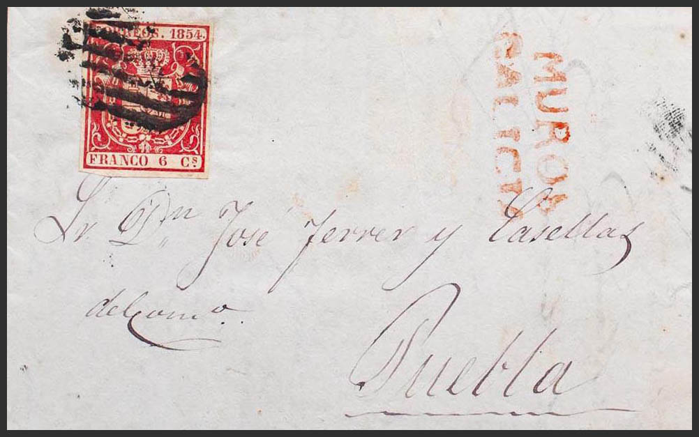 Galicia. Postal History. On the front pre-philatelic mark MUROS / GALICIA. MAGNIFICENT.
