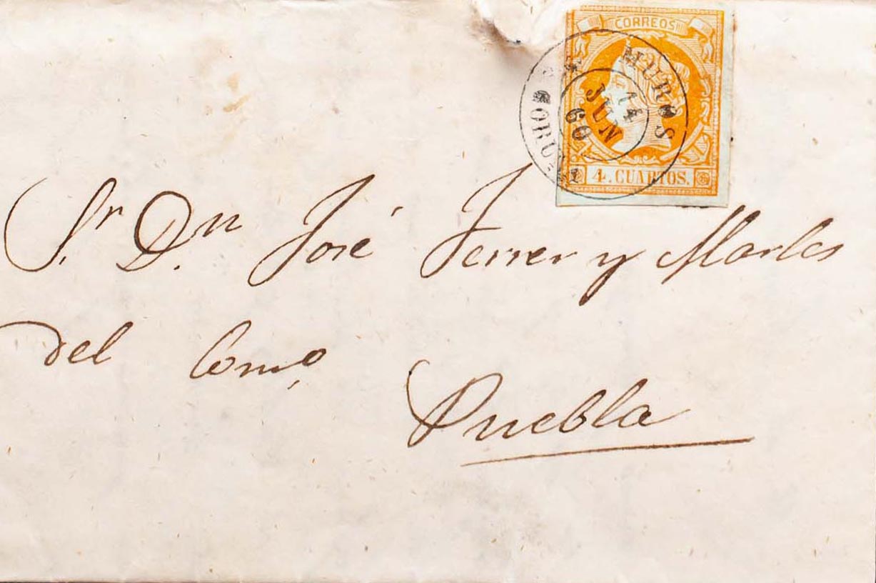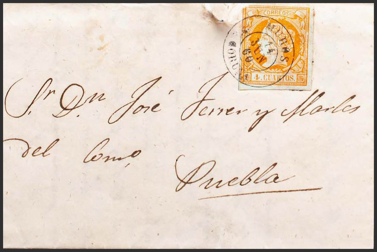 52. 1860. 4 orange cuartos . WALLS to PUEBLA DE CARAMIÑAL. Postmark MUROS / CORUÑA. MAGNIFICENT.