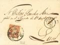 |ENVELOPE| 48. 1858. 4 red quarters. VILLALBA to LUGO. Postmark R.CARRETA Nº34, from Lugo and on the front (lightly stamped) pre-philatelic mark GALICIA / VILLALBA, in red. MAGNIFICENT AND RARE.