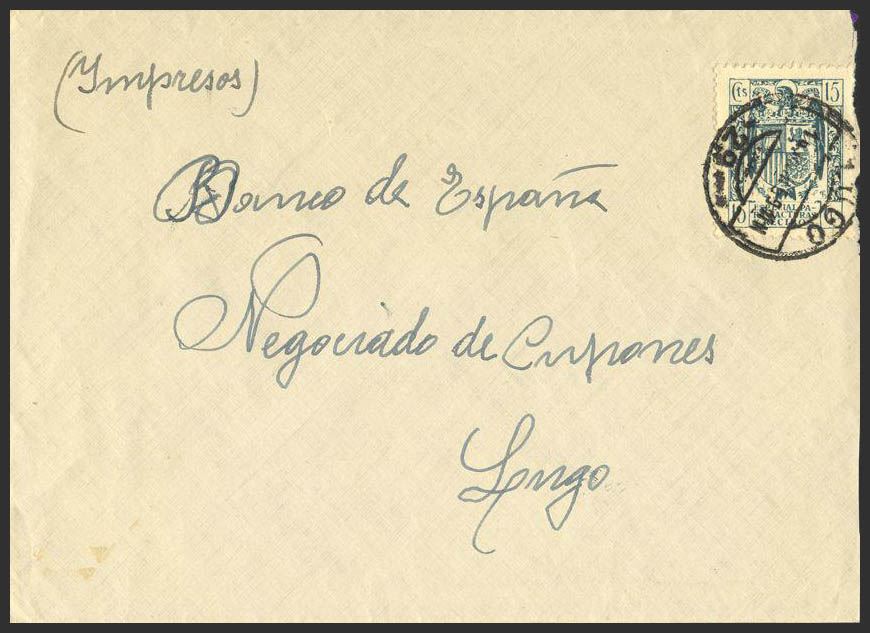 Fis 23. 1939. 15 cts INVOICES. Internal Mail of LUGO. MAGNIFICENT.
