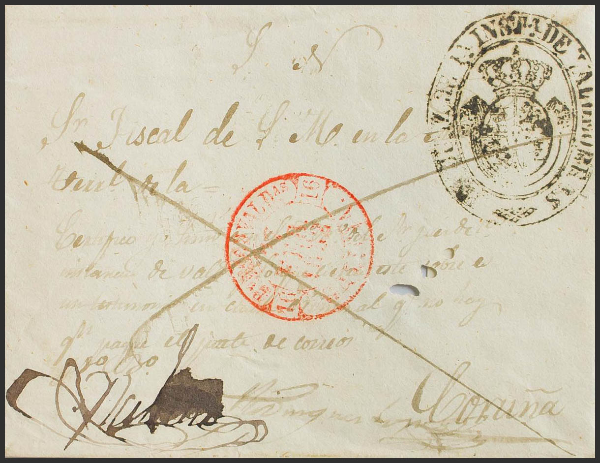 1853. Front of Judicial Escrow from BARCO DE VALDEORRAS to LA CORUÑA. Baeza BOAT OF VALDAS. / GALICIA. BEAUTIFUL AND VERY RARE.