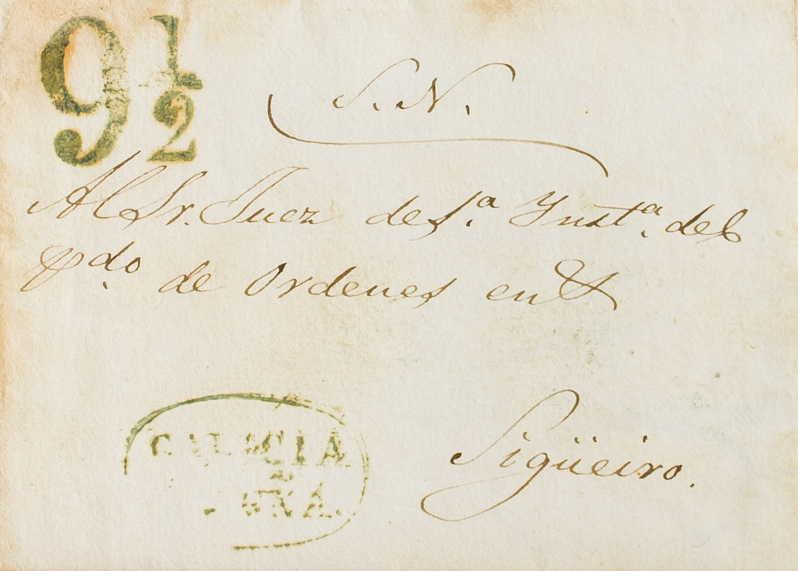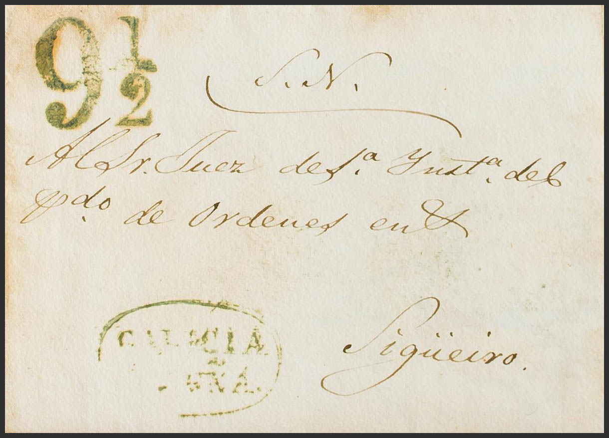English 1840. LA CORUÑA to SIGEIRO. GALICIA / CORUÑA brand, in green (PE12) 2004 edition. MAGNIFICENT AND RARE.