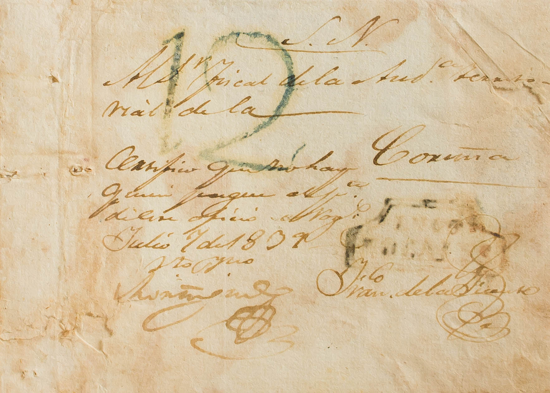 English 1839. NOGALES in LA CORUÑA (moisture stains). LUGO / NOGALES brand, in writing ink (PE1) 2004 edition. MAGNIFICENT AND VERY RARE.