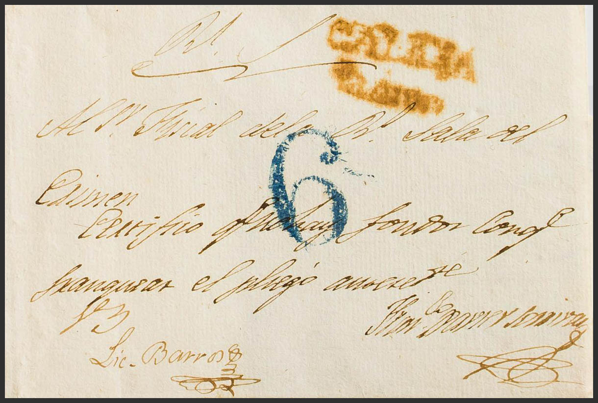 1834. FIFTH to SANTIAGO. GALICIA / PADRON brand, in brown (PE4) 2004 edition. PRETTY AND VERY RARE.