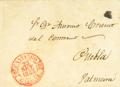 |ABOUT|1845. BUÑO (LA CORUÑA) to PALMEIRA. Baeza SANTIAGO / GALICIA (Type II), in red. MAGNIFICENT PRINT.