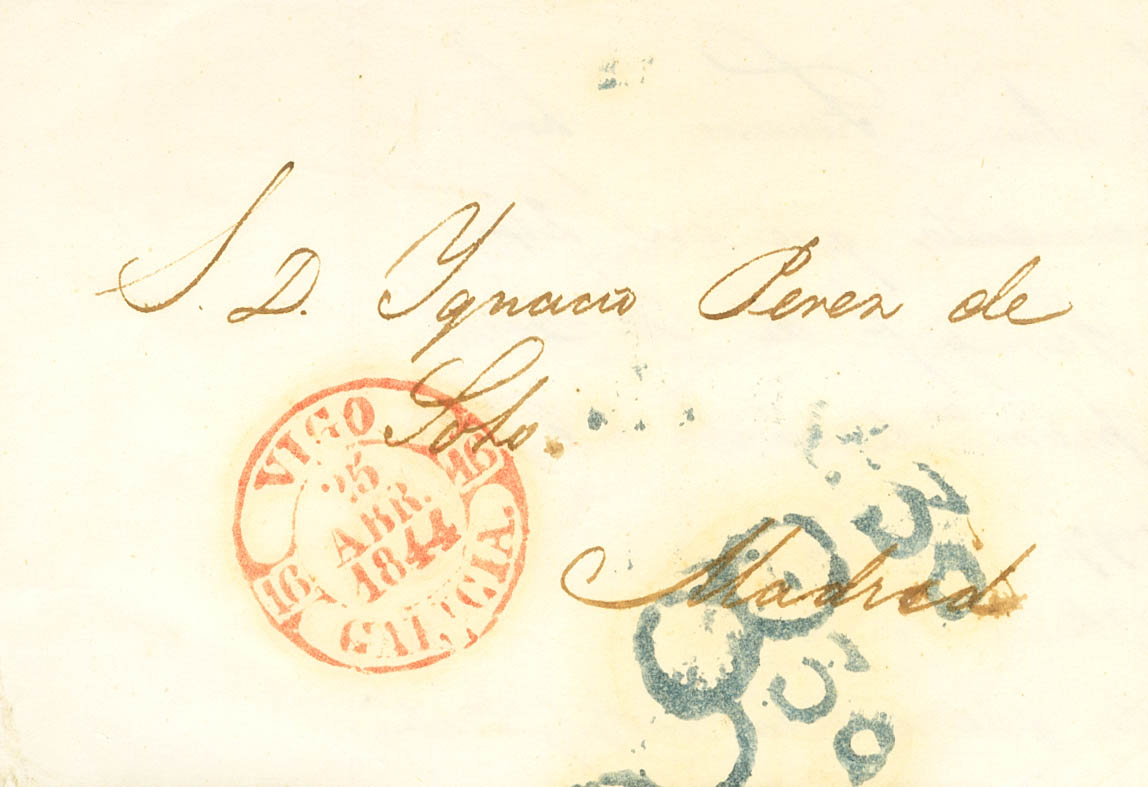 |ABOUT|1844. VIGO to MADRID. Baeza VIGO / GALICIA, in red. MAGNIFICENT.