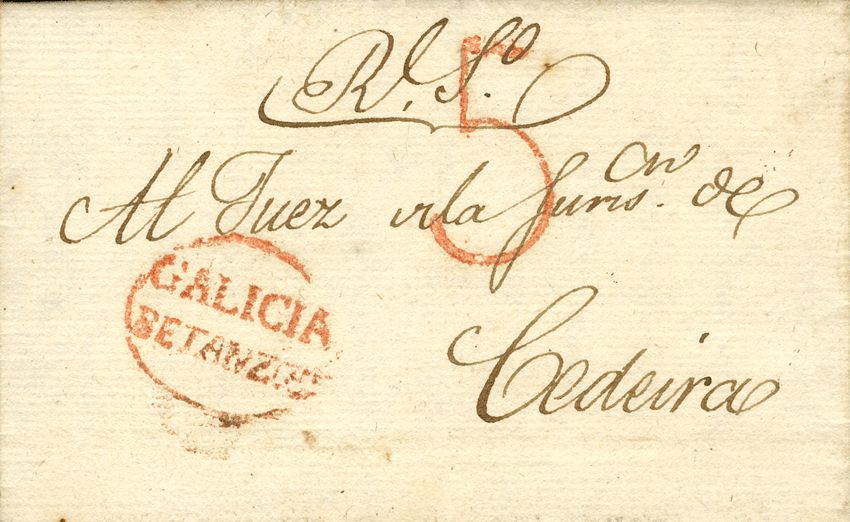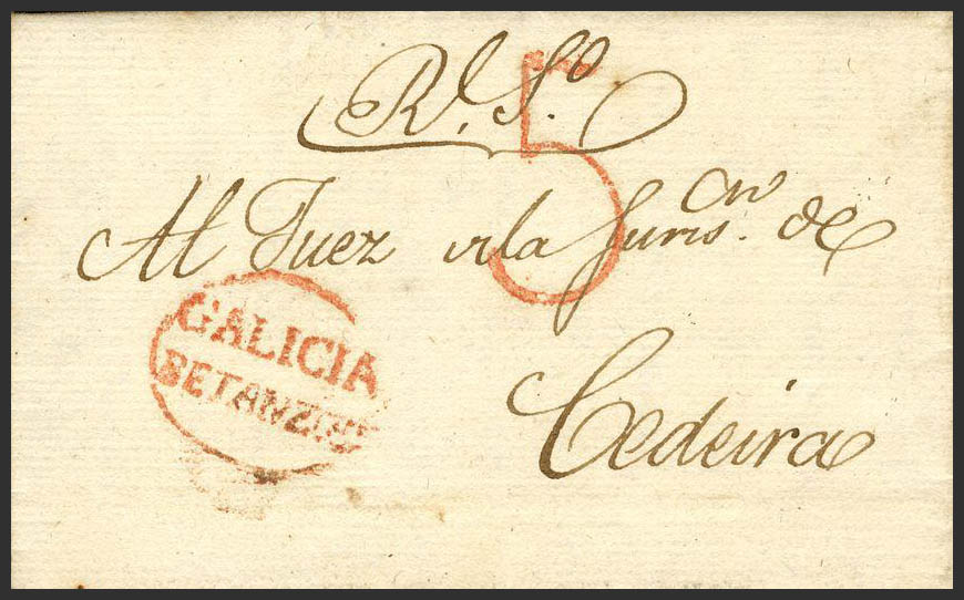 1826. BETANZOS to CEDEIRA. GALICIA / BETANZOS brand, in red (PE3) 2004 edition. MAGNIFICENT.