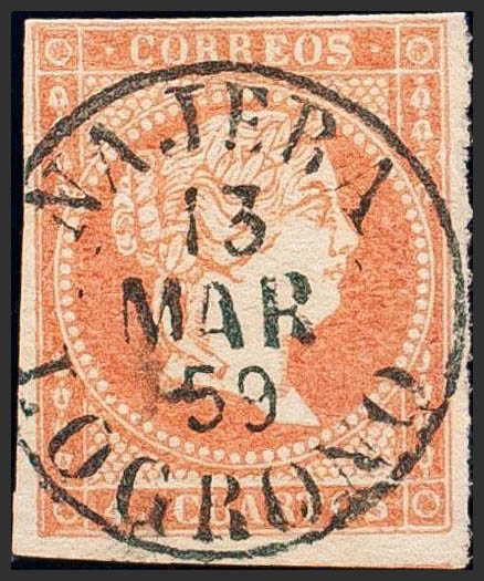 English 48. 1855. 4 cuartos red. Postmark NAJERA / LOGROÑO (Type I). MAGNIFICENT PRINT.
