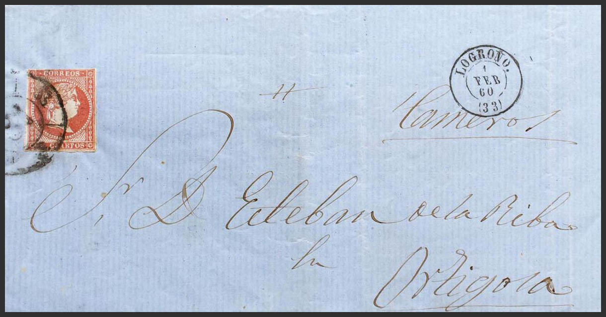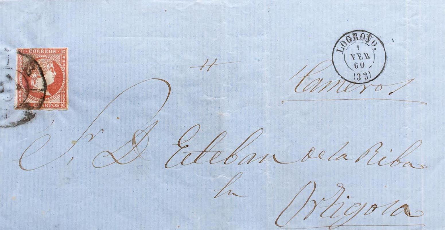 The Rioja. Postal History. R.CARRETA Nº33, from Logroño, circulated on February 1, during the exchange period. MAGNIFICENT.
