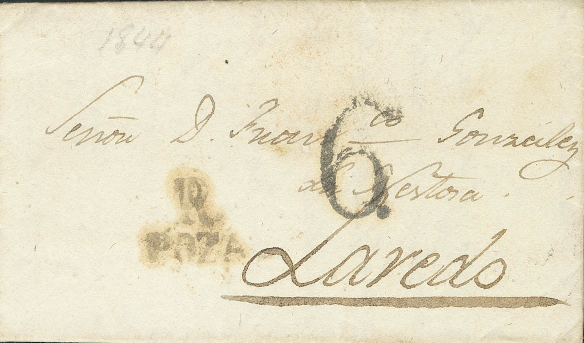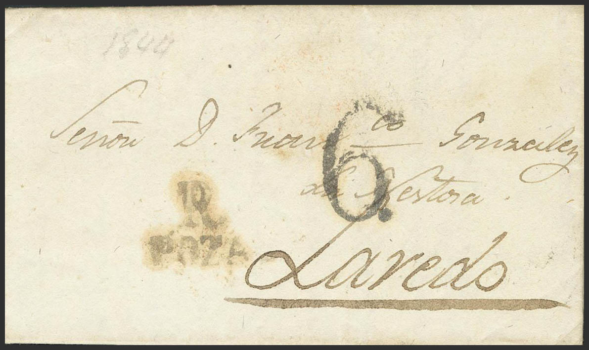 1844. POZA DE LA SAL (BURGOS) to LAREDO. R / POZA brand, in black (PE1) edition 2004. MAGNIFICENT AND VERY RARE.