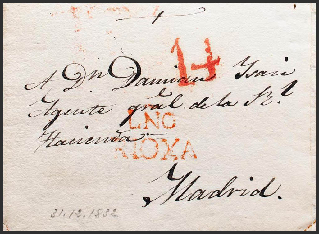 1832. LOGROÑO to MADRID. LÑO / RIOXA brand, in red (PE7) 2004 edition. MAGNIFICENT.