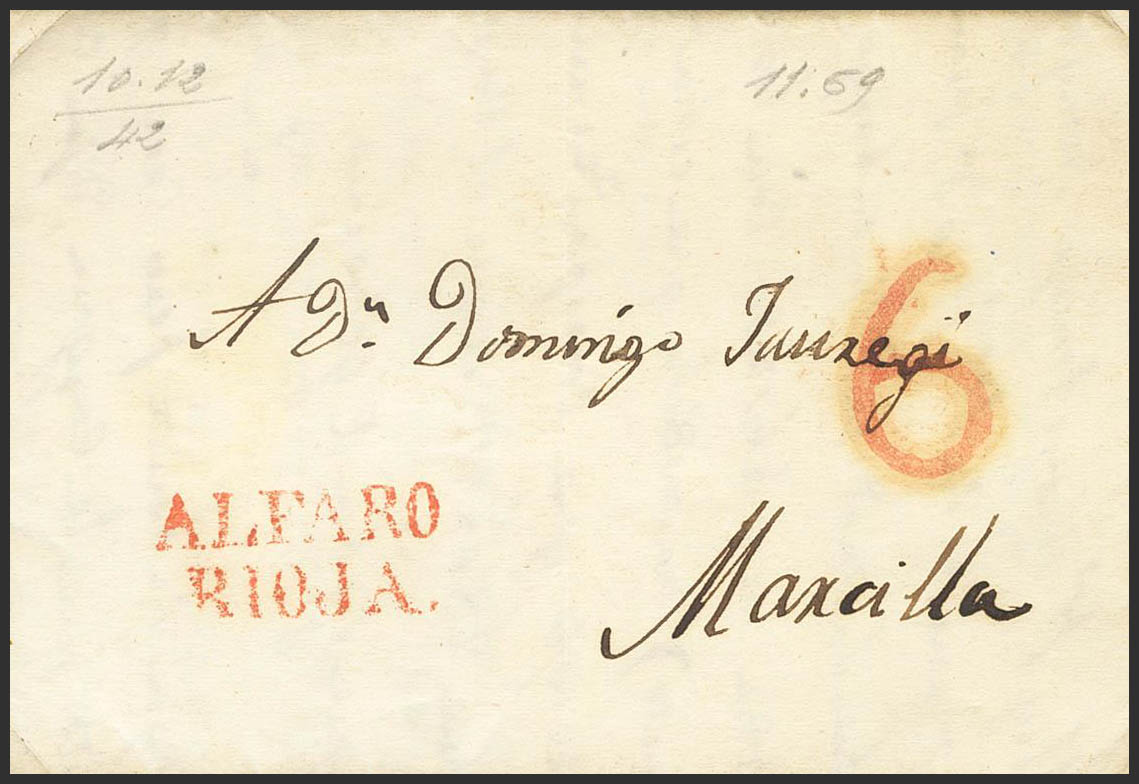 1843. ALFARO to MARCILLA. ALFARO / RIOJA brand, in red (PE4) edition 2004. MAGNIFICENT PRINTING.