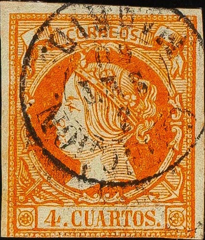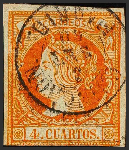 English 52. 1860. 4 cuartos yellow. Postmark CHINCHON / MADRID. MAGNIFICENT AND RARE.