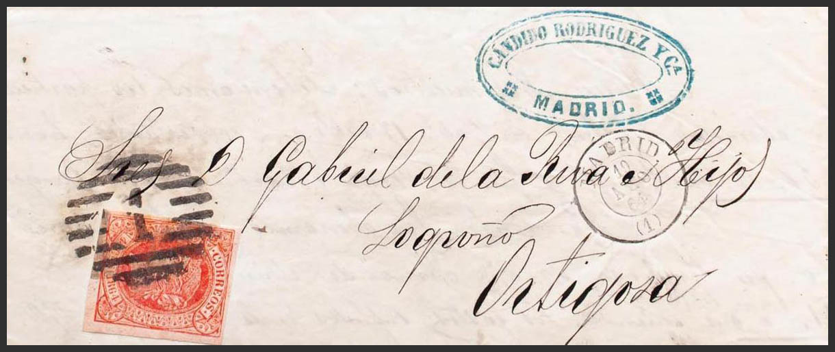 English Madrid. Postal History. PARRILLA CON Nº1, from Madrid. MAGNIFICENT.