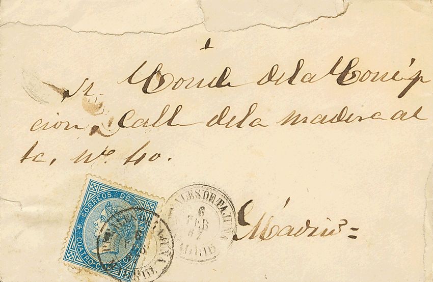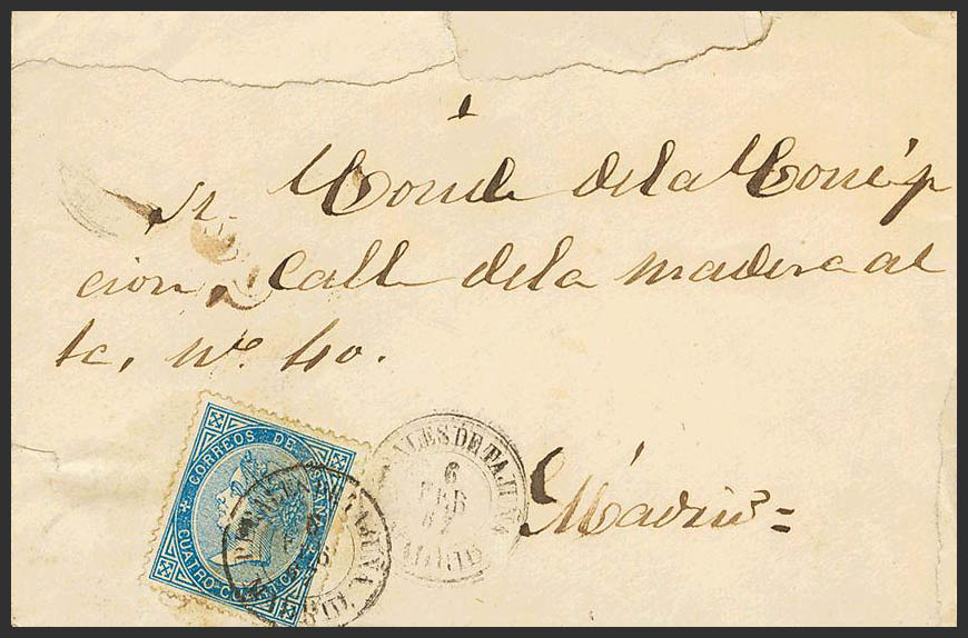 88. 1867. 4 cuartos blue. PEAR TREES FROM TAJUÑA to MADRID. Postmark PERALES DE TAJUÑA / MADRID. MAGNIFICENT.