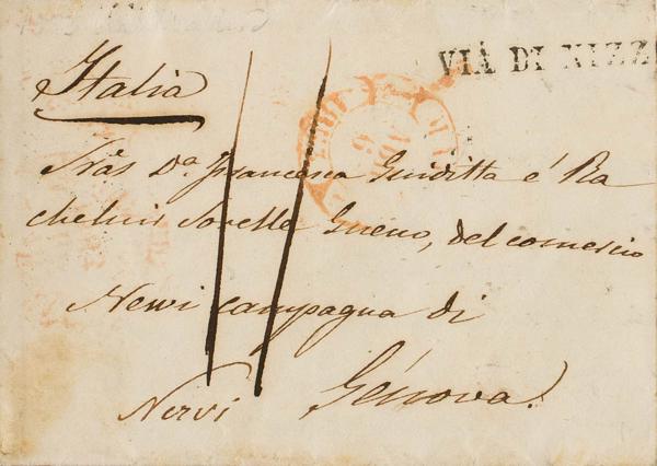 1853. MADRID to NERVI (ITALY). Baeza MADRID, VIA DI NIZZA brand and portage "11" handwritten. MAGNIFICENT.