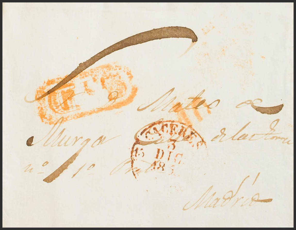 English 1853. CACERES to MADRID. Franchise mark S. and D., in red (PE79) 2004 edition. MAGNIFICENT.