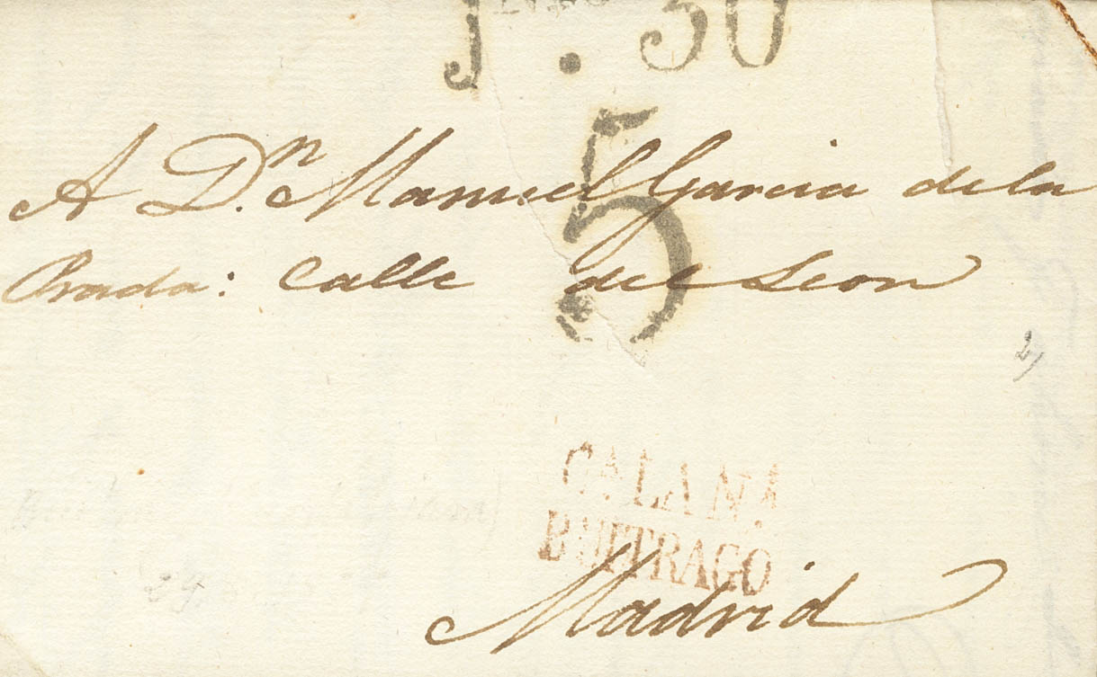 English 1825. BUITRAGO DE LOZOYA (MADRID) to MADRID. Brand Cª. THE. No. / BUITRAGO, in red (PE3) edition 2004. MAGNIFICENT.