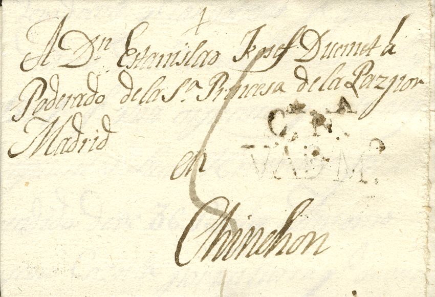 1828. 1828. SIGN to CHINCHON. Brand Cª Nª / VALDEMº, in black. MAGNIFICENT AND RARE.