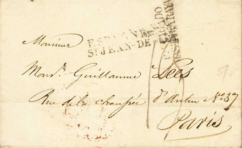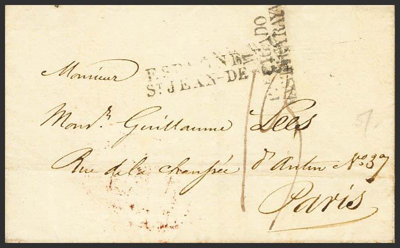 English 1823. MADRID to PARIS (FRANCE). Brand M / PTE PAID / UNTIL THE LINE, in black (PE83) 2004 edition. MAGNIFICENT.