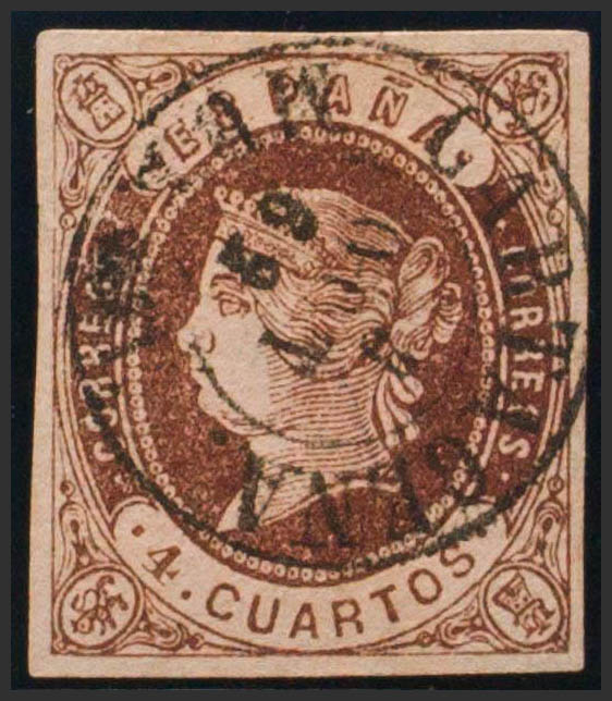 58. 1862. 4- cuartos chestnut. Postmark CARTAGENA / MURCIA. MAGNIFICENT.