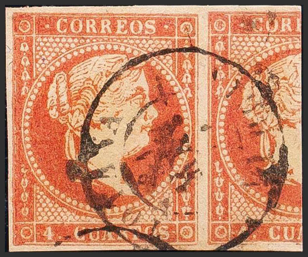 48. 1855. 4 cuartos red. Postmark TOTANA / MURCIA. MAGNIFICENT.