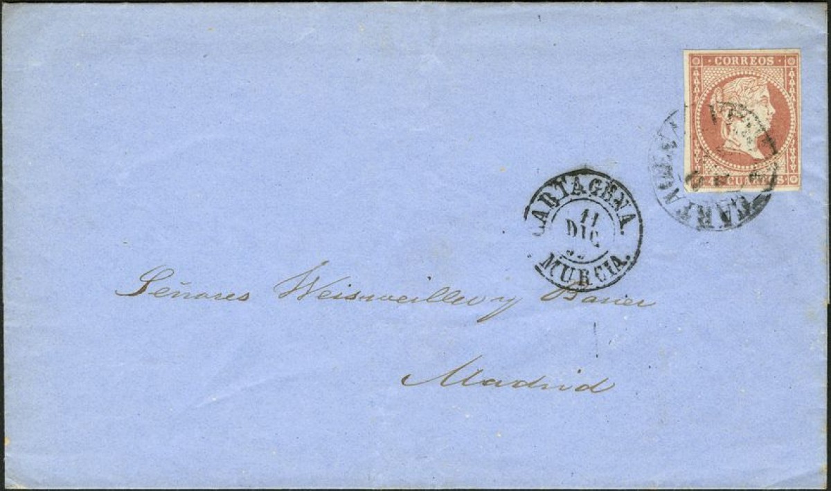48. 1856. 4 red cuartos . CARTAGENA to MADRID. Postmark CARTAGENA / MURCIA (Type I).