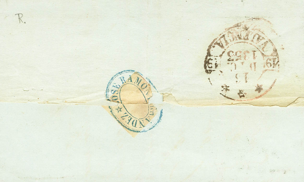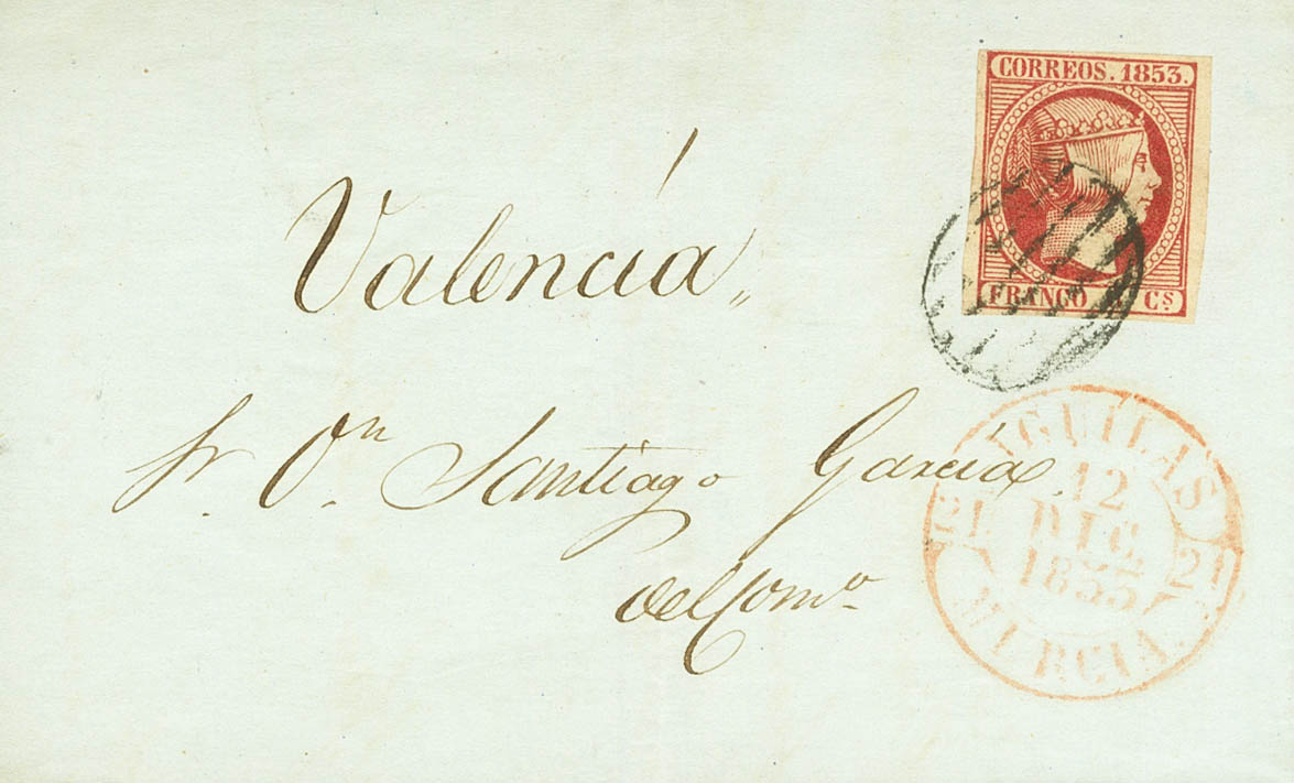 |ABOUT| 17. 1853. 6 carmine quarters. AGUILAS in VALENCIA. On the Baeza front AGUILAS / MUGoodIA. MAGNIFICENT AND RARE.