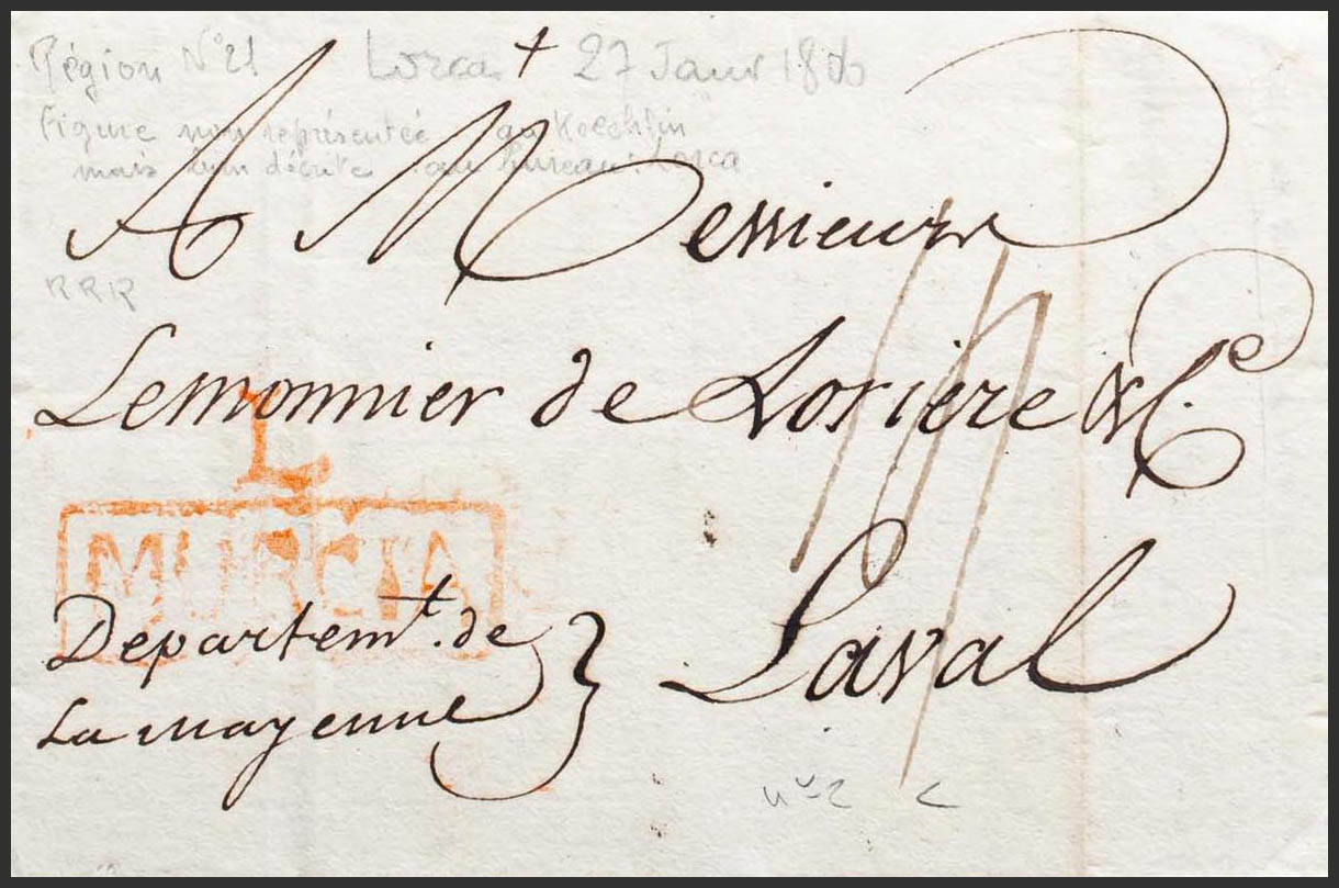 1806. LORCA to LAVAL (FRANCE). Brand L / MURCIA (PE3) edition 2004. MAGNIFICENT.