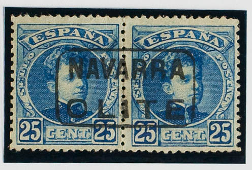 248. 1901. 25 cts blue, pair. Mail postmark NAVARRA / OLITE. MAGNIFICENT.