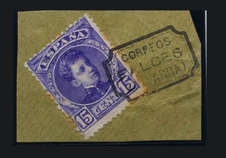 △ 246. 1901. 15 cts violet, on fragment. Special letter postmark CORREOS / FALCES / (NAVARRA). MAGNIFICENT AND RARE.