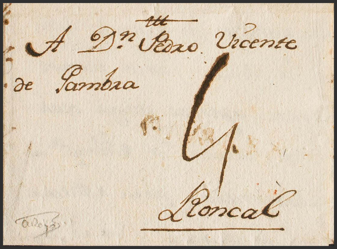 1797. MENDAVIA to RONCAL. NAVARRA brand, in Viana writing ink (weak stamping) (PE3) 2004 edition. BEAUTIFUL AND EXTRAORDINARILY RARE.