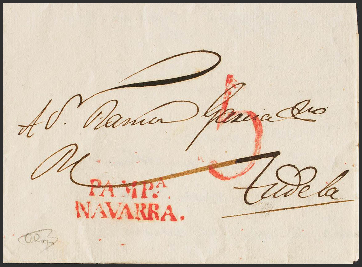 1827. PAMPLONA to TUDELA. PAMPª / NAVARRA brand, in red (PE28). MAGNIFICENT.