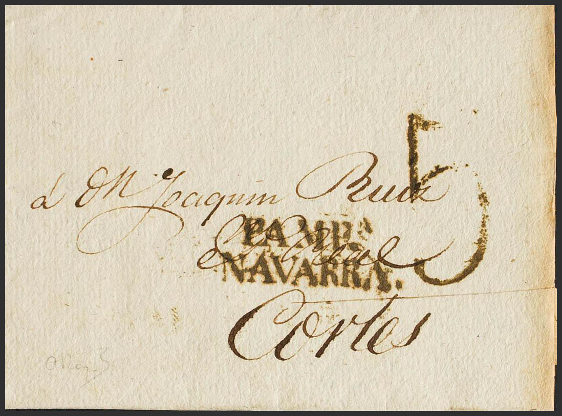 English 1824. PAMPLONA to CORTES. PAMPª / NAVARRA brand, in black (PE28) 2004 edition. MAGNIFICENT.