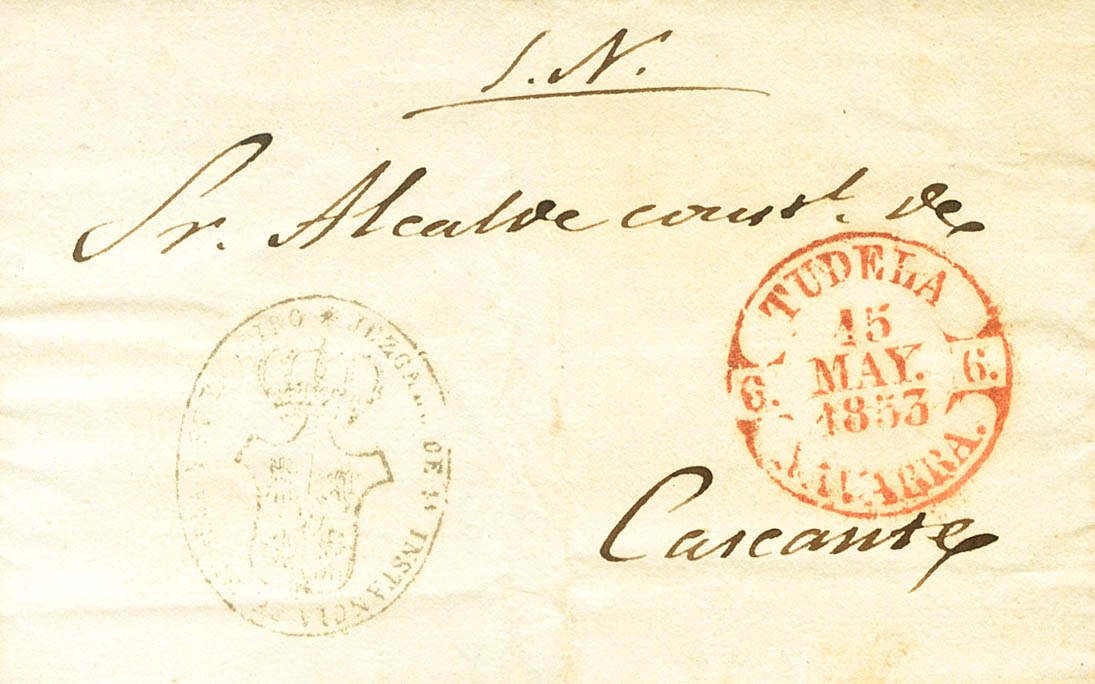 |ABOUT|1853. TUDELA to CAUncirculatedANTE. Baeza TUDELA / NAVARRA, in red. MAGNIFICENT.