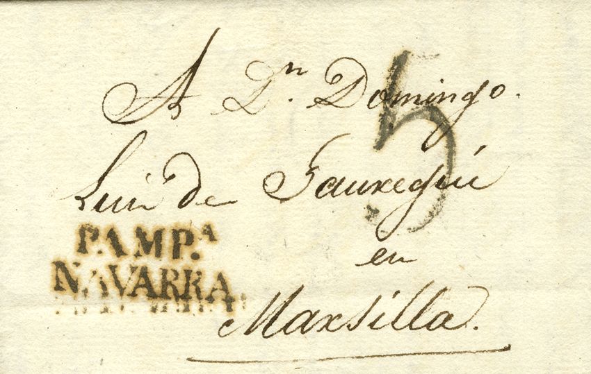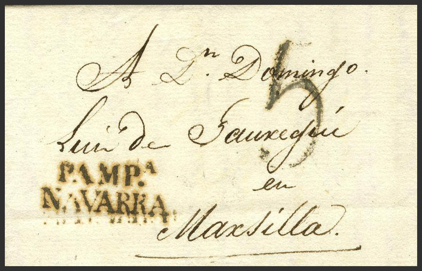 1824. PAMPLONA to NAVARRA. PAMPª / NAVARRA brand, in black (PE28) 2004 edition. MAGNIFICENT.