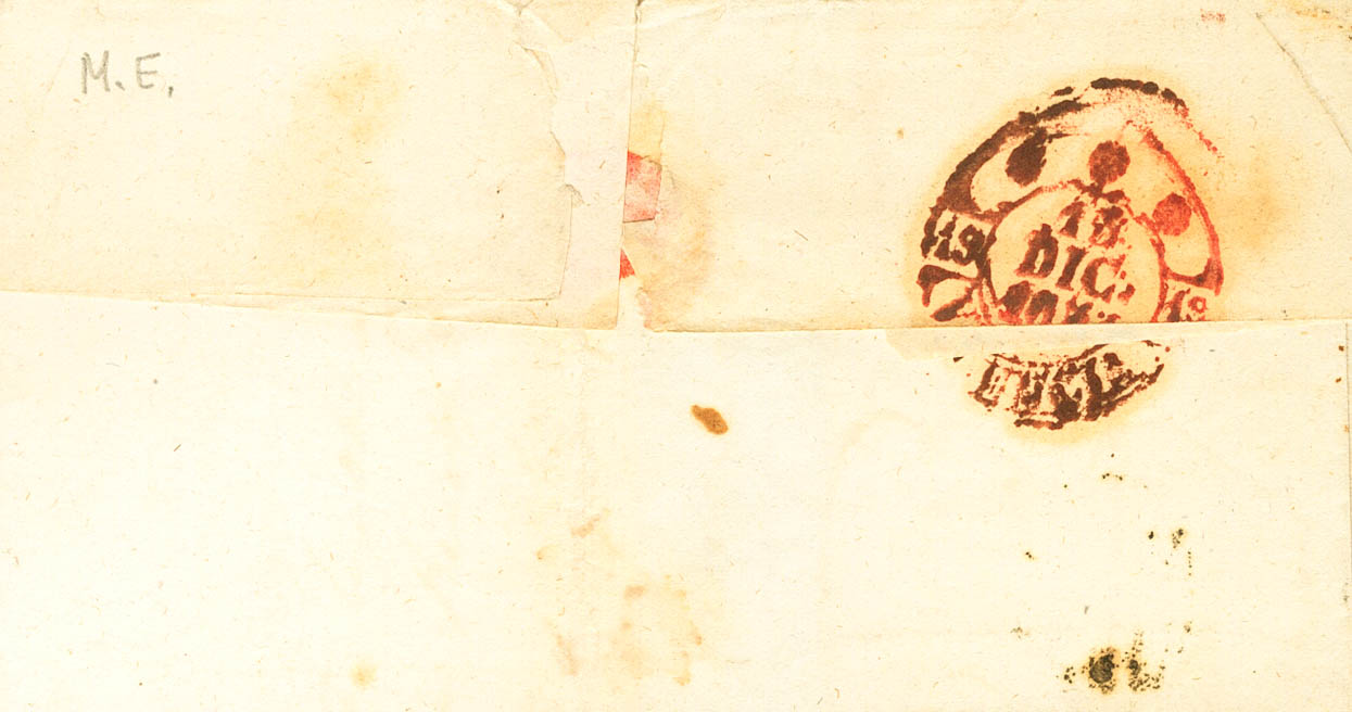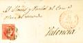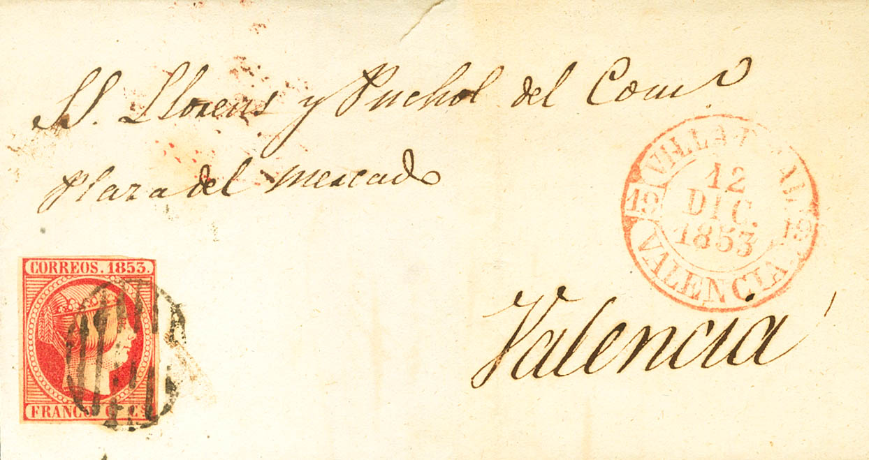 |ABOUT| 17. 1853. 6 pink quarters. VILLARREAL (CASTELLON) to VALENCIA. On the front Baeza VILLA-REAL / VALENCIA, in red. MAGNIFICENT.