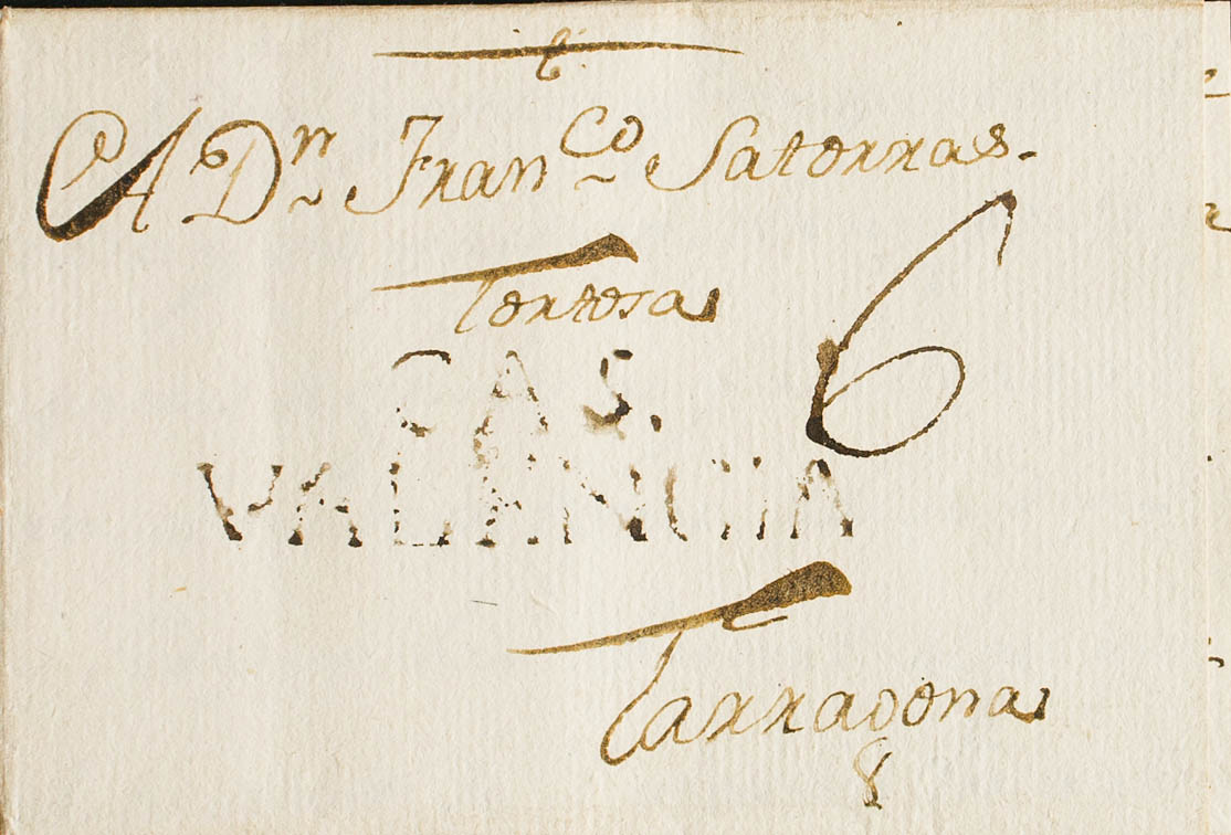 1803. CASTELLON to TARRAGONA. CAS mark. / VALENCIA, in writing ink (PE2) 2004 edition. MAGNIFICENT.