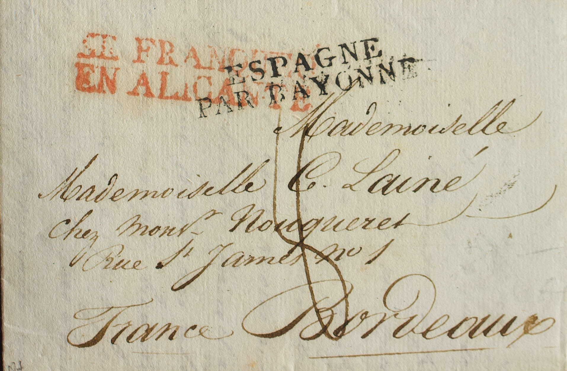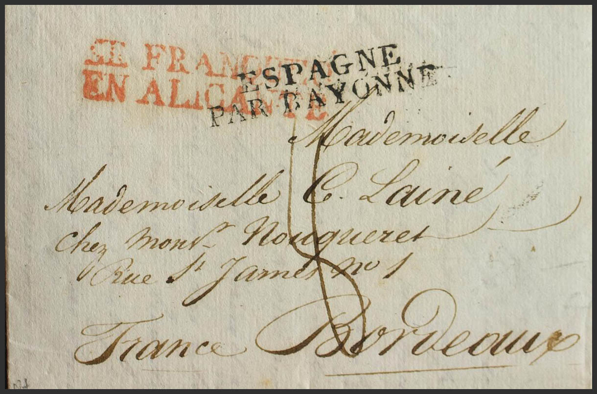 1826. ALICANTE to BORDEAUX (FRANCE). Brand SE FRANQUEO / IN ALICANTE (PE16) 2004 edition. MAGNIFICENT AND UNUSUAL.