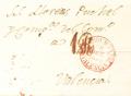 |ABOUT|1850. REQUENA to VALENCIA. Baeza REQUENA / VALENCIA, in red. MAGNIFICENT.