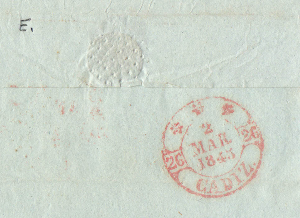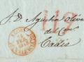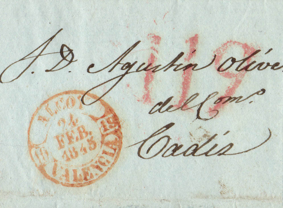 |ABOUT|1845. ALCOY to CADIZ. Baeza ALCOY / VALENCIA, in red-orange. MAGNIFICENT.