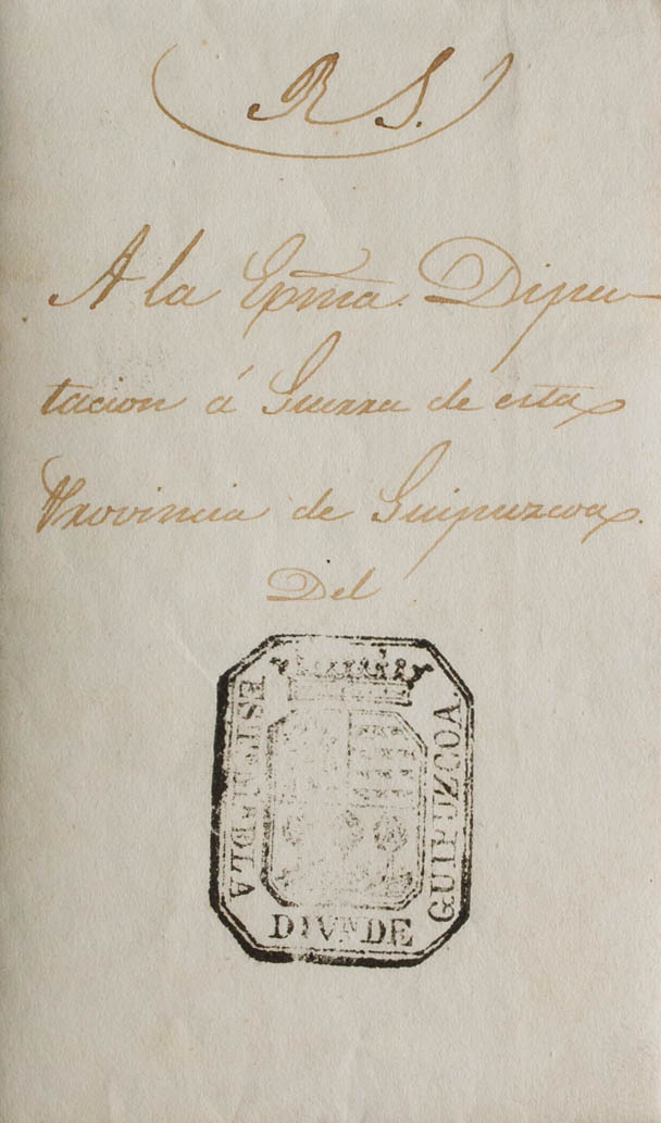 1838. SORAVILLA (ANDOAIN, GUIPUZCOA) to SAN SEBASTIAN (circulated during the First Carlist War). Brand ESTª DE LA DIVº DE GUIPUZCOA, franchise. MAGNIFICENT AND VERY RARE.