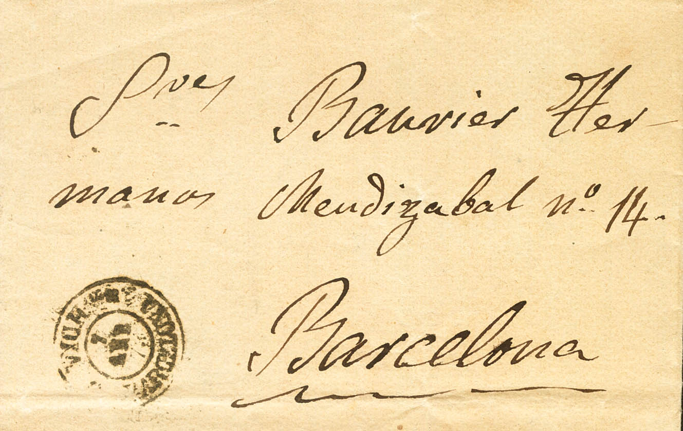 |ABOUT|1873. RODA DE TER (BAGoodELONA) to BAGoodELONA. On the back, the Town Hall's mark and the handwritten "Due to lack of postage stamps", and inside, an interesting text justifying the lack of stamps due to the Carlist War: "You will know that the Carlists, or rather the thieves, have asked for the whopping sum of two thousand duros, something impossible to pay because you already know that something will have been paid to be able to continue our work...". MAGNIFICENT AND VERY RARE.