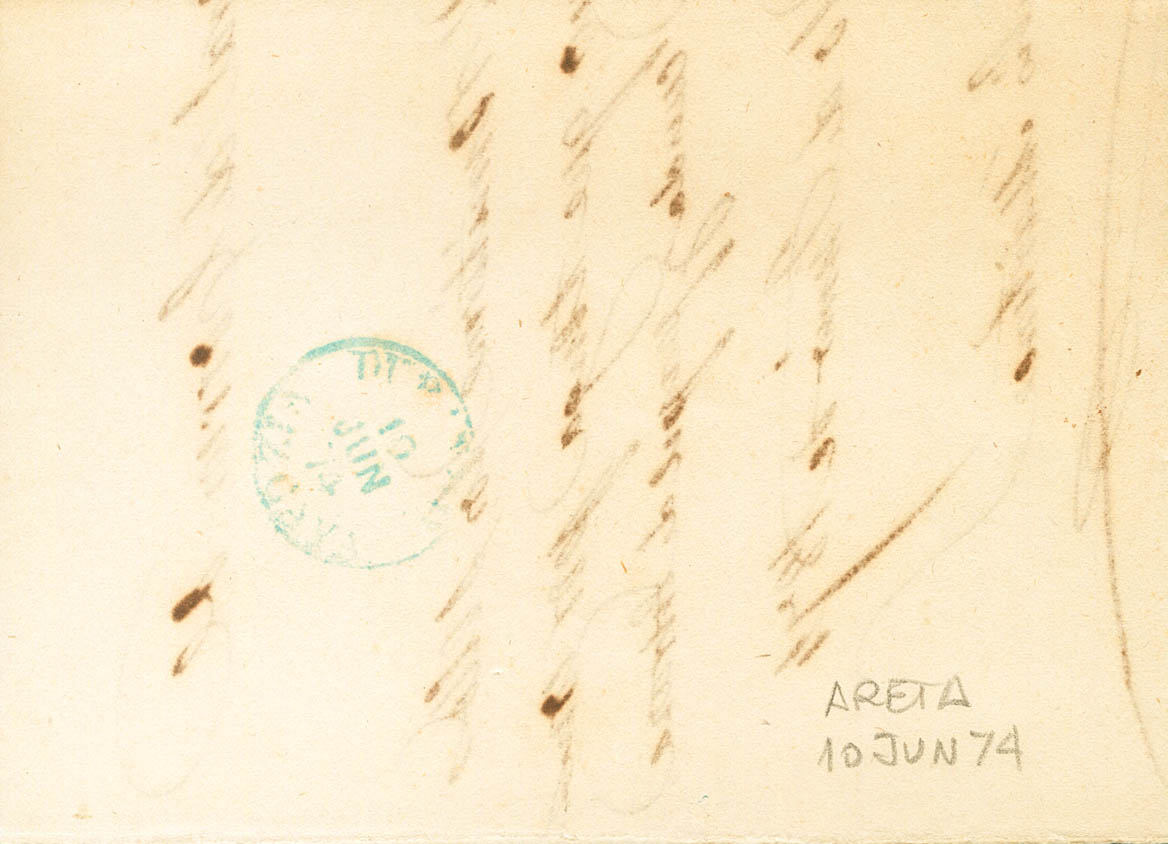 |ABOUT|1874. (June 10). ARETA to DURANGO, addressed to the Central Administrator of Durango with the indication "Please send me the postage stamps you deem appropriate, string and brown paper". Mark ARETA / CORREOS / VIZCAYA, in blue. MAGNIFICENT AND RARE.